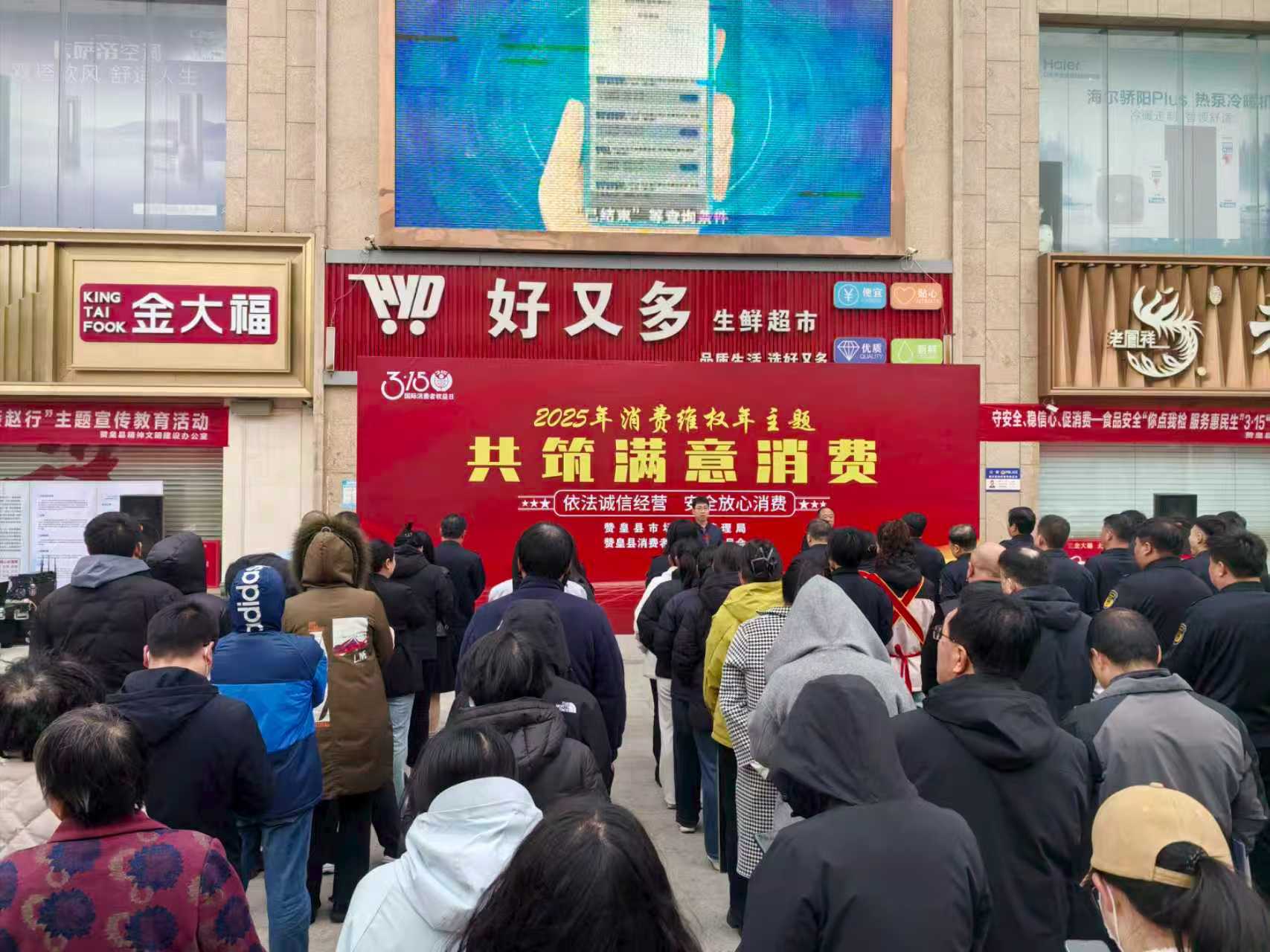 3月14日上午,赞皇县市场监督管理局在好又多超市门前举行2025“3·15”国...